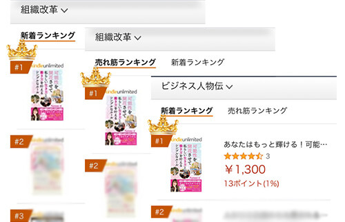 Kindleランキング11部門1位獲得